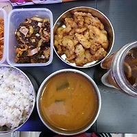 전날 만들어둔 들깨를 가장한 참깨 무국에 (그래도 들기름은 썼음) 마지막 남은 시금치나물 (한단 하니까 반찬3번 쌀 수있음) 미역줄기랑 따로 담은 멸치랑 드렸다.
