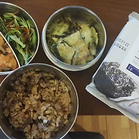 쌀과 귀리만 먼저 씻어 불려놓고 밥물은 약간 적게잡았다.