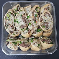 재워둔(간장 설탕 마늘 후추 참기름) 다진 소고기 유부초밥에 110그람정도 쓰고 90그람정도 남았다.